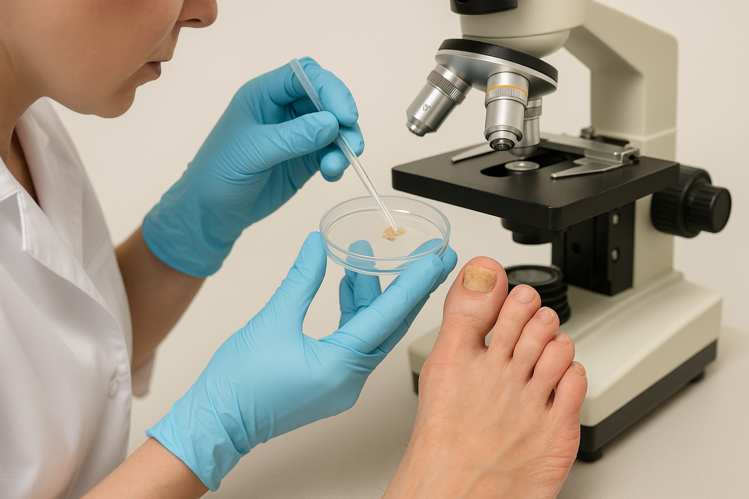 Badanie mykologiczne to bezbolesna procedura diagnostyczna, która pozwala wykryć obecność grzybów chorobotwórczych w płytce paznokciowej. Aby wynik był wiarygodny, konieczne jest odpowiednie przygotowanie do wizyty. Niewłaściwe przygotowanie może zafałszować wynik badania i utrudnić postawienie diagnozy. Podczas pobrania próbki specjalista delikatnie usuwa fragment zakażonej płytki lub pobiera materiał z powierzchni paznokcia i okolicznej skóry. Jak przygotować się do badania: